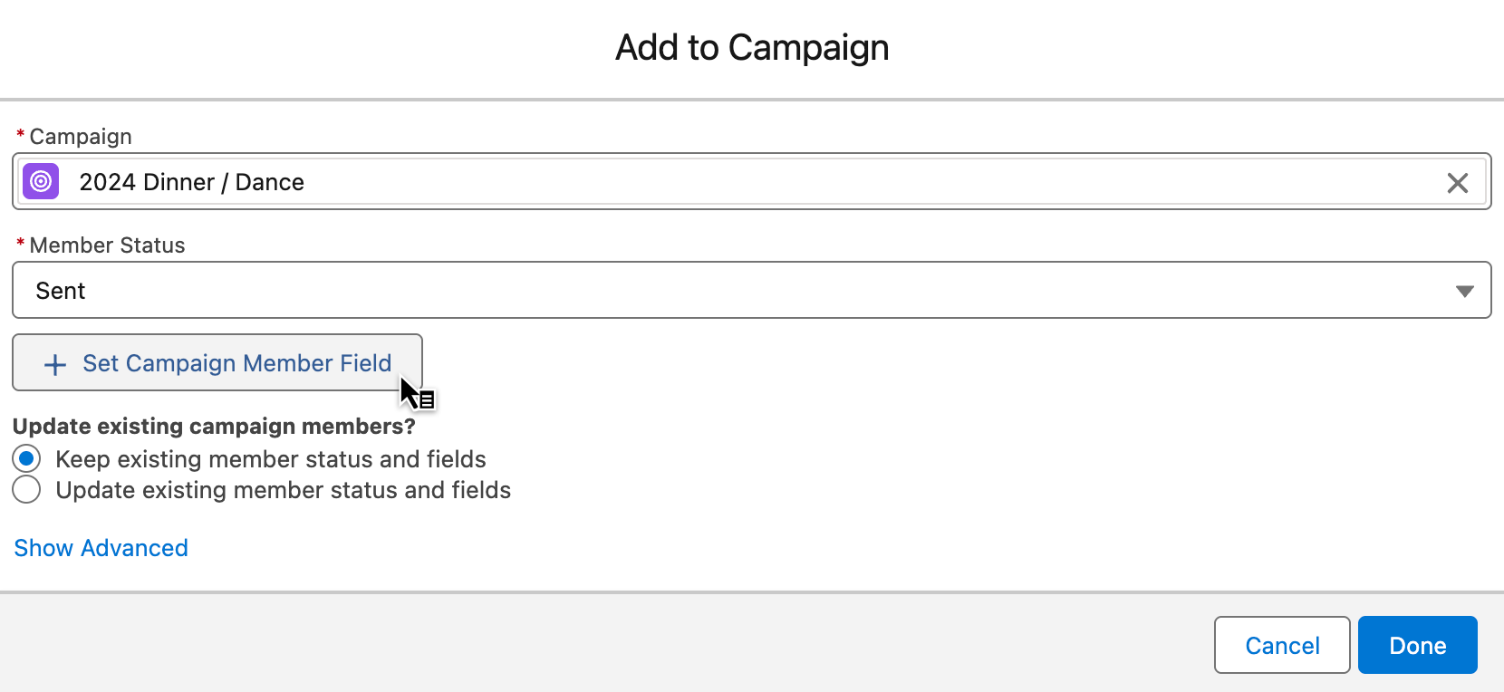 - By default, when adding or updating Campaign Member records, the only field you set is the Campaign Member Status.