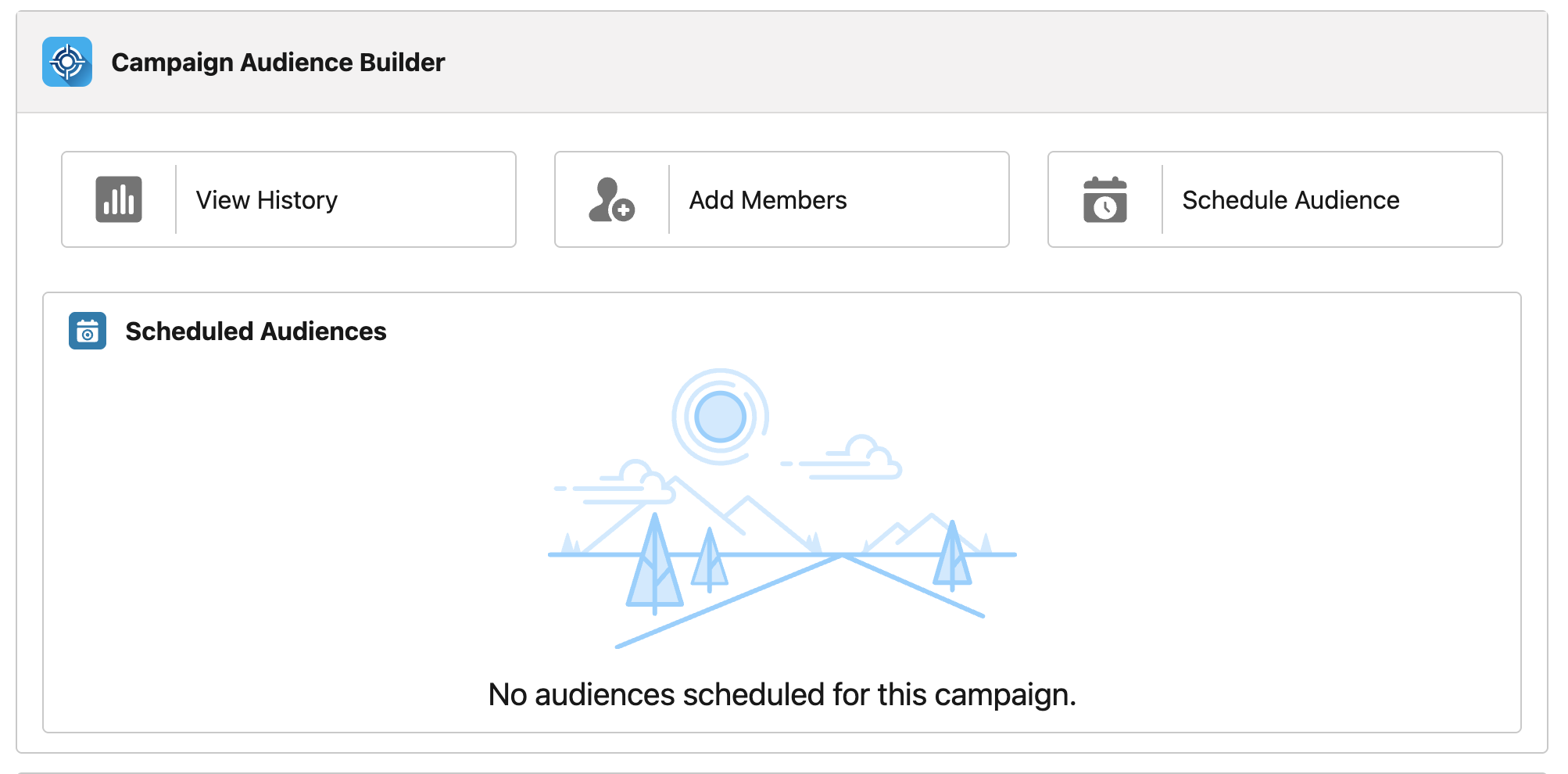 - Schedule Audience - Enables the setting up of schedules for audiences that should repeatedly update the campaign members list.
