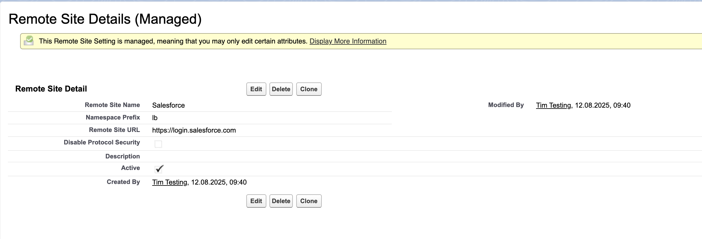 - Then Click Edit for the Salesforce Remote Site Name with the Namespace Prefix lb.
